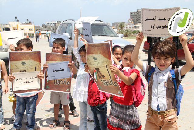 ضمن سلسلة نشاطات تنفذها جمعية منتدى التواصل، إحياءً لذكرى النكبة الفلسطينية، بالتعاون مع مؤسسات المجتمع المدني، واللجان الشعبية للاجئين، انطلقت، اليوم، بالنصيرات، مسيرة محمولة لأطفال روضة مرح النموذجية التابعة للمنتدى، رفعوا خلالها شعارات تؤكد على حق العودة، وحقوق اللاجئين الفلسطينيين كافة.
